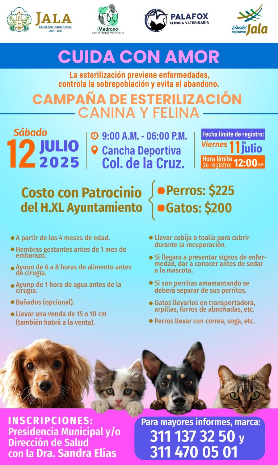 La cancha deportiva de la colonia La Cruz, en Jala, será el escenario de una jornada que busca mejorar la calidad de vida de los animales de compañía y controlar de manera ética su reproducción.