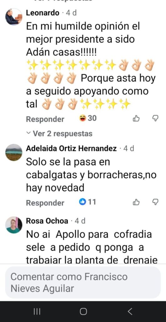 A estas denuncias se suman algunas quejas recogidas también en comunidades del municipio, donde se cuestiona el estilo de gobierno y la manera en que se toman decisiones administrativas.