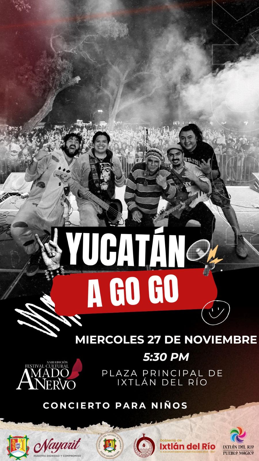 En el marco del Vigésimo Tercer Festival Cultural «Amado Nervo«, el gobierno municipal de Ixtlán, encabezado por el licenciado Guillermo Ramírez, hace una cordial invitación a los ixtlenses, especialmente a los más pequeños, para asistir al espectáculo infantil «Yucatán a go go».