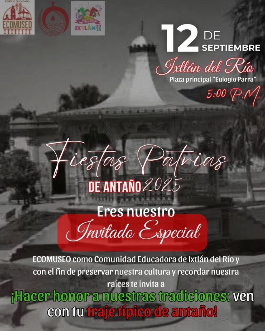 Con el propósito de revivir los festejos de los abuelos, bisabuelos y tatarabuelos, devolviendo el protagonismo a las tradiciones que marcaron aquellas épocas doradas, el Gobierno de Ixtlán y el Ecomuseo se unen para organizar las “Fiestas Patrias de Antaño”, programadas para el próximo viernes 12 de mayo en la plaza principal, a partir de las 5:00 de la tarde.