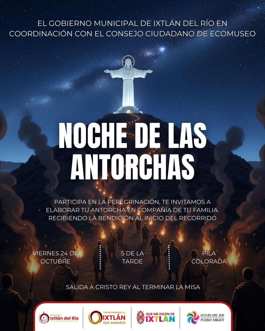 La Noche de las Antorchas en Ixtlán del Río empieza a tomar forma. Será el viernes 24 de octubre cuando este evento de fe y esperanza vuelva a unir a las familias en un camino de luz y devoción rumbo al Cerrito de Cristo Rey.