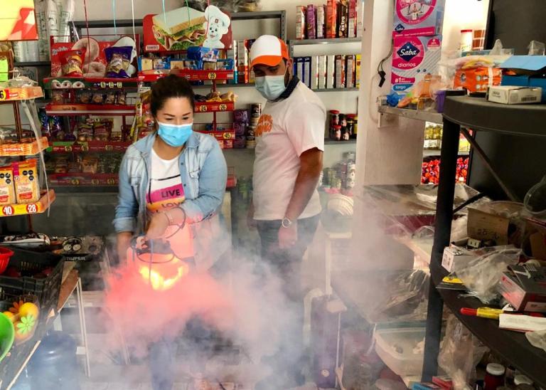 Mediante un equipo especial para fumigar un componente biológico óptimo, seguro y eficaz para la sanitización de espacios interiores; no tóxico, y que tampoco deja humedecida o manchadas las superficies, hace días una agrupación de jóvenes inició con la labor social de desinfectar las fincas o comercios que así lo habían estado pidiendo en esta comuna.