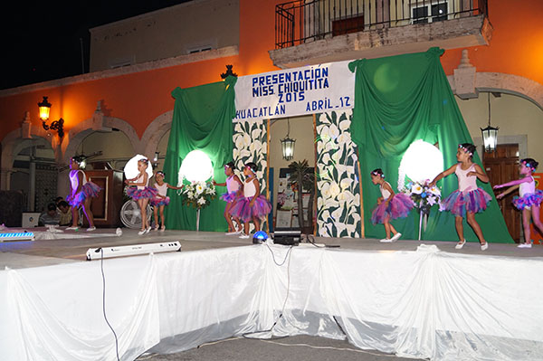 AHUACATLÁN.- Mientras que los aficionados a las Chivas celebraban su triunfo ante el León, decenas de ahuacatlenses se apersonaron en la explanada de la presidencia municipal para atestiguar el primer evento de presentación de las aspirantes al título Miss Chiquitita Ahuacatlán 2015.