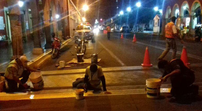 Para no entorpecer tanto la circulación, el personal de la Dirección Municipal de Protección Civil – con la anuencia del alcalde – dispuso realizar estas acciones en horario nocturno, empezando en el cruce de la avenida Hidalgo y la calle de Madero cuyo punto es utilizado por la mayoría de los peatones que caminan por la zona centro para atravesar esa rúa, ya sea de norte a sur o de sur a norte.