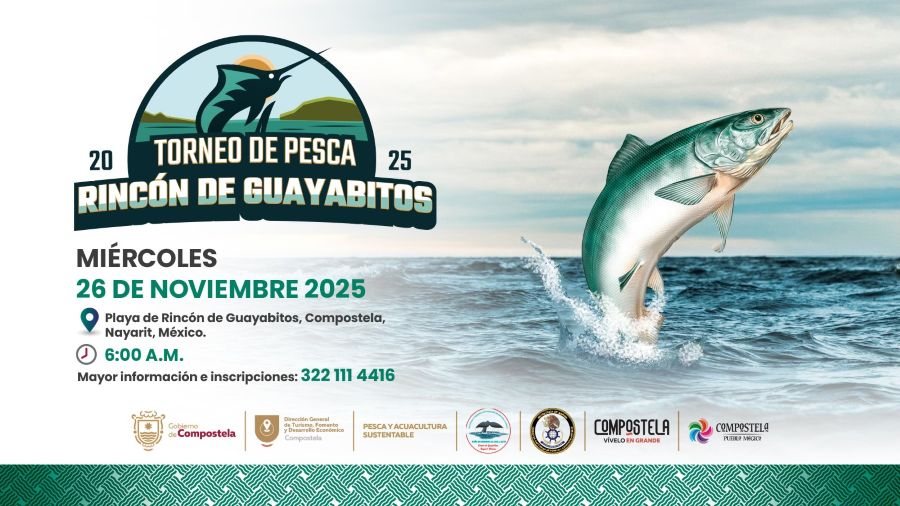 Ya hay fecha confirmada para una de las tradiciones más esperadas en la costa nayarita. El Torneo de Pesca 2025 en Rincón de Guayabitos, municipio de Compostela, se llevará a cabo el miércoles 26 de noviembre, en este paraíso turístico donde el mar calma, el alma se renueva y la emoción se siente en cada lanzamiento de anzuelo.
